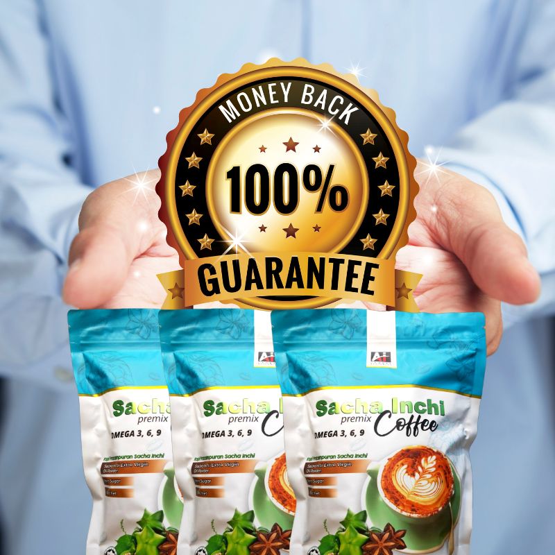 Tak perlu risau dan beli tanpa risiko. Kami sangat yakin bahawa Kopi Sacha Inchi mampu membantu anda untuk pulihkan kesihatan badan anda. Amalkan Kopi Sacha Inchi setiap hari sehingga habis 1 kotak dan lihat perubahan.