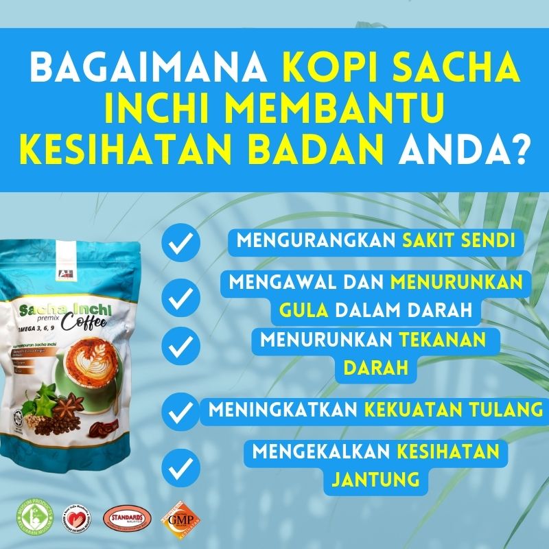 Kopi Sacha Inchi Diformulasikan khas membantu mengurangkan tekanan darah dalam badan, mengatasi kencing manis serta meningkatkan ketahanan dalam tubuh. Sacha Inchi ini diperlukan untuk menjaga kesihatan badan setiap hari.